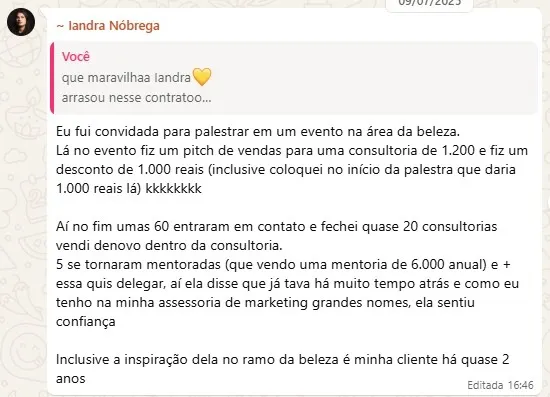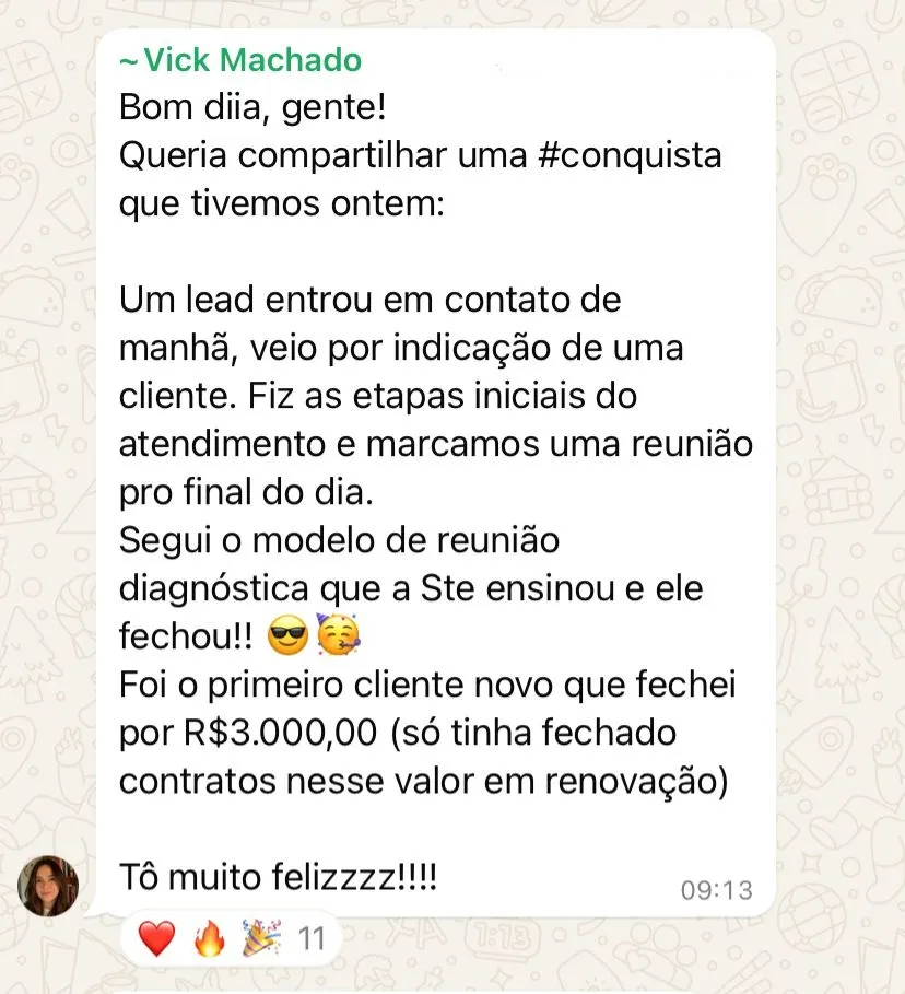Depoimentos de alunas que conseguiram novos clientes aplicando o método da Academia. Gente que saiu da seca, venceu o medo da prospecção e começou a faturar de verdade.